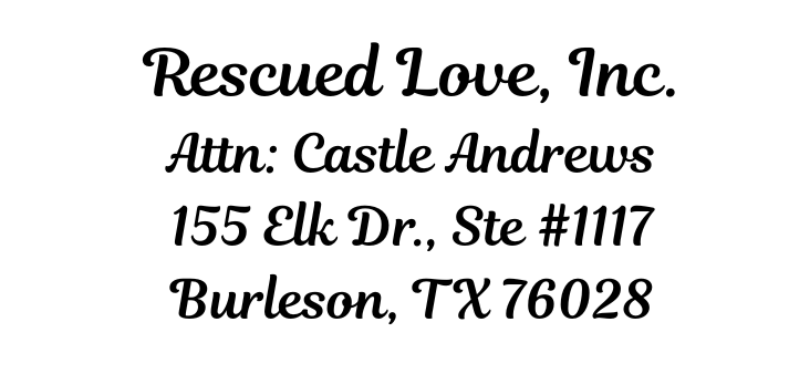 If giving by check, make payable to “Rescued Love, Inc.” and mail to: